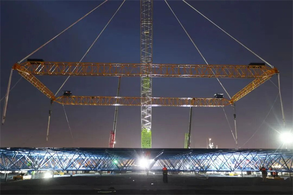 网架吊装至船后,需要继续以毫米级精度对接到船上预定的支架上。海上风大浪急,吊装上船作业中细微的误差都可能导致网架运输过程中“失之毫厘,差之千里”。为了让网架精准落位,项目团队采用北斗系统对现场整体场地进行建模,用牵引绳辅助微调,在船上安排专人实时控制吊装落位精度,最终实现钢网架精准对接。