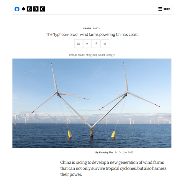 报道指出,每年5月至11月,源自西北太平洋的台风肆虐东亚和东南亚国家。中国主要企业通过综合策略提升了风机的抗灾能力,包括开发先进材料、增强气象预报能力以及升级风机控制系统。加州非营利组织全球能源监测机构(GEM)可再生能源研究员韩玉佳举例说明,明阳智能生产的“明阳天成号”便是典范。