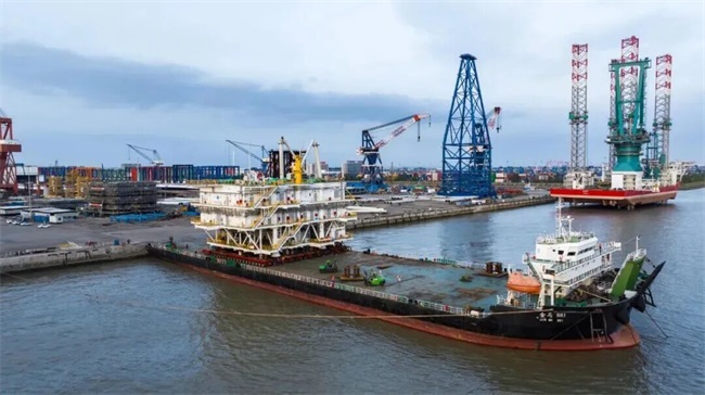 南通振华重型装备制造有限公司在此次项目中展现了卓越的工程能力和高效的项目管理,确保了海上升压站的顺利装船。随着这一关键节点的完成,江苏国信大丰海上风电项目正朝着既定目标稳步前进,有望成为我国海上风电领域的又一标志性工程。