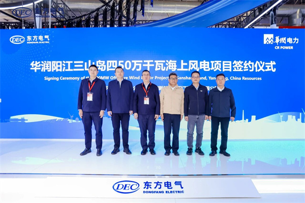 展会期间,国内权威第三方技术服务机构——中国质量认证中心为东方电气的新一代风电产品17兆瓦级直驱漂浮式海上机组颁发了设计认证。东方电气正式发布多款契合陆上与海上市场需求的新一代“标杆产品”,包括陆上H6.x~10MW-222平台机组和海上H12~18MW-260平台机组。这些机型针对不同风况与环境进行了定制化开发,展现了东方电气在风电机组精准设计与场景适配方面的核心能力。活动现场,东方风电还与华润电力取得重要合作成果。