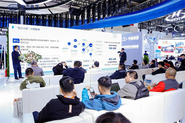 此外,东方电气还围绕风电技术前沿设立了一系列专题分享,内容涵盖超长柔性叶片的气动与结构设计探索、“东方小新”AI智能体在预测性运维中的应用、“号角”机组集成状态监测系统、双馈变流器构网技术与改造方案,以及自主国产跨平台监控能管系统等创新成果,全面体现了东方风电在智能化与国产化方面的综合实力。