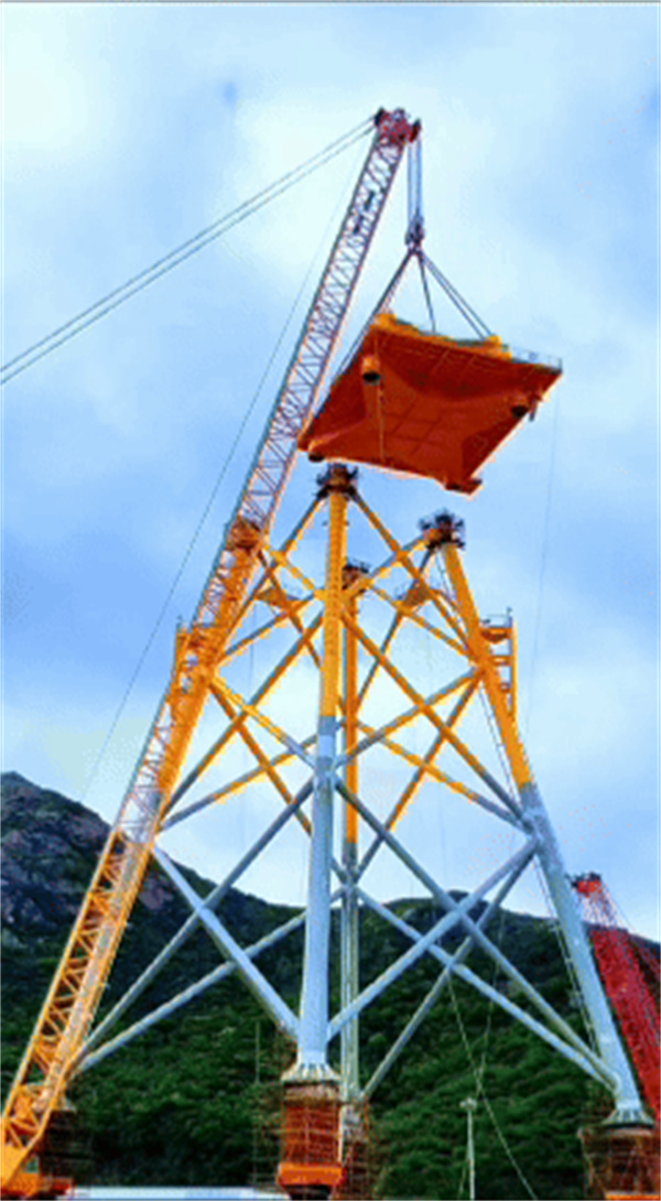 面对项目实施过程中的技术挑战,项目团队展现出专业的攻坚能力。在总组吊装环节,由于受限于场地设备,需使用1600吨履带吊完成大型结构吊装,其中过渡段在单钩起吊时易发生旋转,存在精度控制与安全风险。为此,技术团队创新采用“钢丝绳牵引+叉车稳控”双保险方案,通过对称设置牵引索并配合地面叉车实时调控,实现了吊装过程的精准控制。