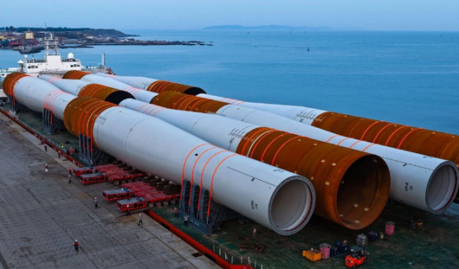 海洋能源网获悉,近日,大金重工为苏格兰Inch Cape海上风电项目制造的第三批8根单桩基础已从蓬莱基地启运。至此,该项目的22根单桩基础已全部完成交付。这一成就标志着大金重工在海上风电基础制造领域取得了重要进展。