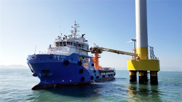 船舶在广东、福建、广西等多个海上风电场圆满完成运维任务,大大提高海上风电定检运维效率。