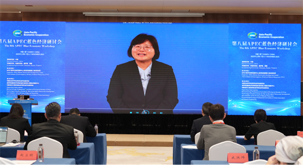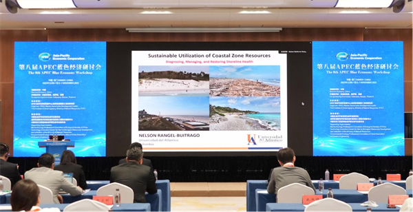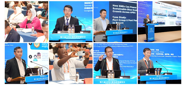 在专题研讨环节,来自多个APEC经济体的代表,通过10个专题报告,围绕海洋生物资源可持续利用、海岸带韧性、生态修复、科技创新及中小企业参与等蓝色经济关键议题展开深入交流,分享了各经济体在推动蓝色增长方面的实践经验。全体与会代表经热烈深入讨论,一致认可并高度评价了由APEC海洋可持续发展中心牵头编制的《第八届APEC蓝色经济研讨会亚太区域海洋生物资源可持续利用建议》,将为加强APEC经济体蓝色经济合作提供决策支持。