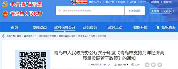 青岛市人民政府办公厅关于印发《青岛市支持海洋经济高质量发展若干政策》的通知