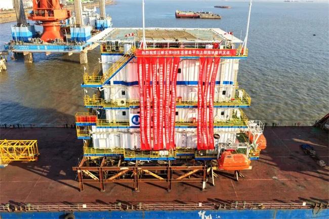 海洋能源网获悉,11月28日,韩通集团承建的三峡大丰H9升压站辅助平台顺利发运并成功接载。这标志着韩通集团负责的三峡大丰800MW升压站项目全部安全交付。