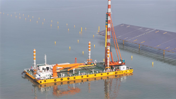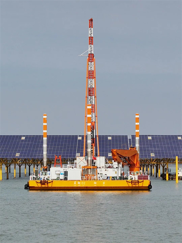 0 1 打破传统海上光伏施工瓶颈,自主研发的核心技术大幅提升打桩效率。