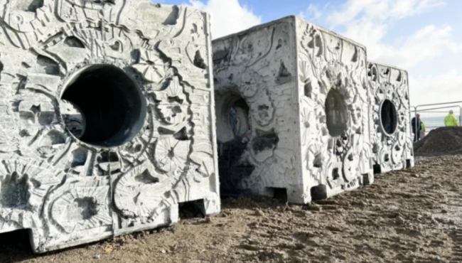 此前,ARC Marine在北海的研究已证实,这些礁石在测试阶段便吸引了众多物种栖息。在OranjeWind风电场,鳕鱼和本地牡蛎被选为关键物种,因其能带来显著的生态效益,为更广泛的海洋生物提供栖息地和保护。
