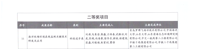 12月11日,中国海洋工程咨询协会正式发布了《2025年度海洋工程科学技术奖获奖名单》,由青岛罗博飞海洋技术有限公司牵头申报的“海洋牧场环境在线监测关键技术研发及应用”项目荣获科技进步类二等奖。这份荣誉,既是对我们多年来深耕海洋科技领域的肯定,更是对我们推动海洋牧场智能化、数字化发展的鼓舞与鞭策。