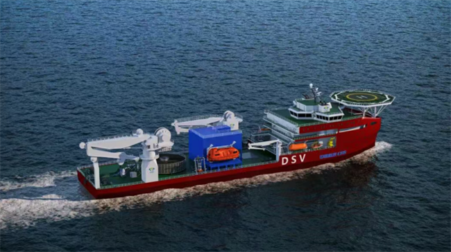 6.5万吨级半潜式运输保障船配置了先进的DP-2级动力定位系统与快速调载技术,具备强大的承载能力和灵活的调度性能,堪称未来深海重大装备运输与应急保障的“移动平台”。而深潜水工作母船则采用了DP-3闭合母排动力定位系统,具备饱和潜水支持和6000米级遥控水下机器人(ROV)作业能力,是开展深海探测、抢险救捞作业的“精准利器”。