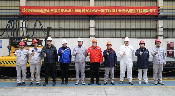 近日,振华重装承建的国电唐山乐亭月坨岛海上风电场一期工程海上升压站项目点火开工。
