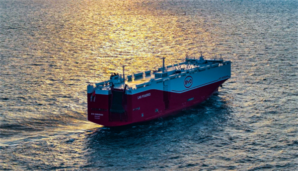 该船采用最新LNG双燃料清洁动力技术,配备高效节能主机、抱轴式轴带发电机、高压岸电系统、BOG再冷凝系统等绿色设备,同时应用了节能装置、减阻防污漆等技术方案,有效提高了船舶的节能减排效率,符合国际海事组织(IMO)最新环保标准,是一艘绿色智能、环保高效的汽车运输船。其高效的装载系统和防护技术,可保障运输过程中的高效装载与车辆安全,为比亚迪新能源汽车的全球交付提供更稳定、低碳的物流支持。