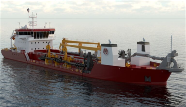 这艘挖泥船专为美国各海岸线的浅水窄域水域作业设计,可实现高效、安全的疏浚施工。船长约346英尺、船宽69英尺、型深23英尺,总装机功率达16500马力,动力系统搭载Wabtec Marine的L250/V250MDC系列柴油发动机。配备两根直径800毫米的耙吸式吸管,疏浚作业最大深度可达100英尺(30.48米),泥舱舱容为6330立方码(4839.62立方米)。其主发动机及发电机均满足美国环保署(EPA)四级排放标准(Tier IV),具备低排放特性。凭借这些核心性能优势,该船跻身现代化挖泥船前列,可承接美国各海岸、港口、航道及沿海开发项目的疏浚工程。