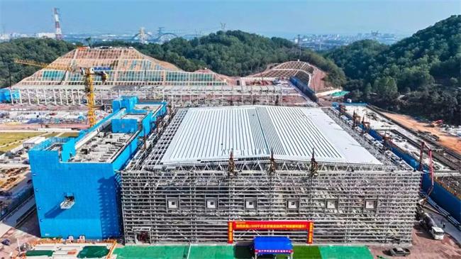 此次提升的屋面网架由1270个焊接球节点和5664根杆件焊接组成。网架自身高度超8米,平面长82.8米、宽80米,相当于一个标准足球场的大小。整体重量达1032吨,相当于700余辆家用轿车的总重,需提升至23.25米,约等于7层普通住宅楼的高度。这一复杂而艰巨的工程任务的成功完成,不仅展现了施工团队的高超技术和专业能力,也体现了中国能建广东院在工程设计和项目管理方面的卓越水平。