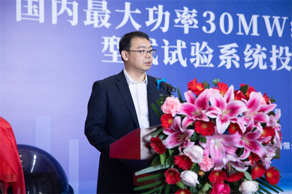 仪式上,中车株洲电机有限公司副总经理申廷国致辞表示,此次30MW级试验系统的投运是企业在风电技术创新道路上的重要成果,中车株洲电机将始终牢记央企使命,持续深耕风电装备研发,推动行业技术进步。