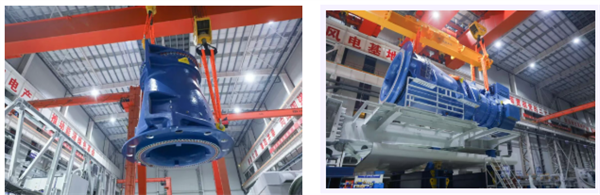 大兆瓦机组体积臃肿,传动系统容易过热、发生故障?中船科技对主轴部件、轴承、齿轮箱进行了全方位的“瘦身和增肌”。通过精密的多参寻优与轴系刚度适配性设计,齿轮箱扭矩密度提升20%,同等体积下动力输出更强劲 ;采用先进的空水冷技术与多场耦合设计等,发电机功率密度提升10% ;整个传动链集成度更高、布局更紧凑, 经过了全功率地面测试和后续风场挂机验证,为25兆瓦机组在恶劣海况下的长周期稳定运行提供坚实保障。