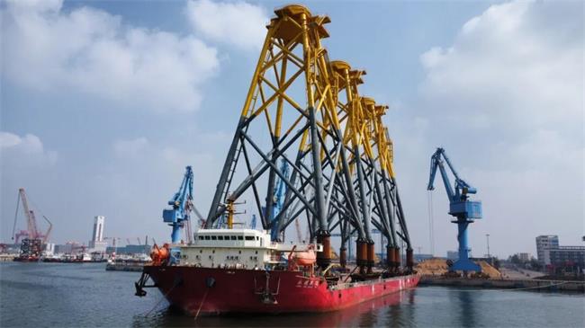 青洲五海上风电项目位于阳江市阳西县沙扒镇附近海域,规划装机容量1000兆瓦。建成后,每年可为电网输送清洁电能约15亿千瓦时,节约标煤约45万吨,减排二氧化碳约120万吨。中国水电四局负责其中3套导管架的建造。本次发运的导管架是13MW海上风机的核心基础结构,总高约73米,相当于25层楼高,最大宽度33.5米,单套重量约1700吨。