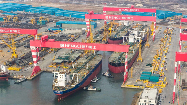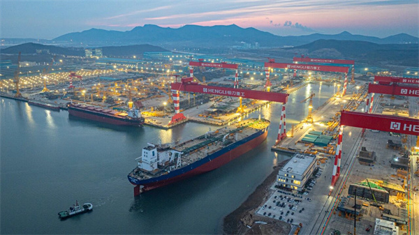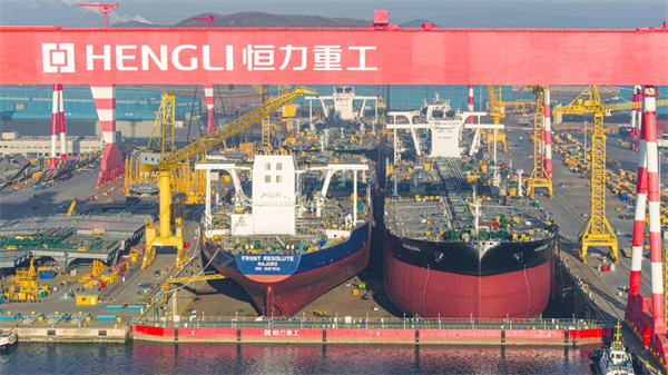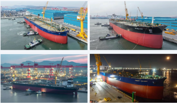 这是恒力重工的第一次,也是世界造船史上的第一次。1号船坞长741米,宽135米,可同时建造4艘30万吨级VLCC/VLOC。本次4艘30.6万吨VLCC同一天出坞,规模空前,这是恒力重工全面运营以来的第一次,也是全球造船业的第一次,在世界造船史上写下了浓墨重彩的一笔。