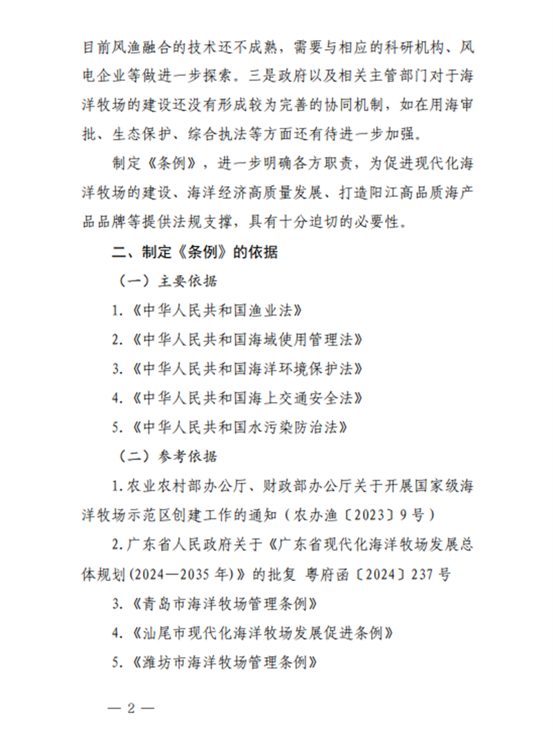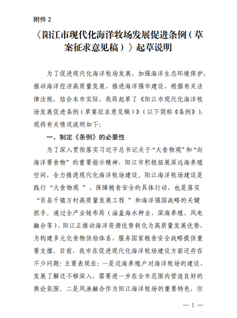 2.《<阳江市现代化海洋牧场发展促进条例(草案征求意见稿)>起草说明》