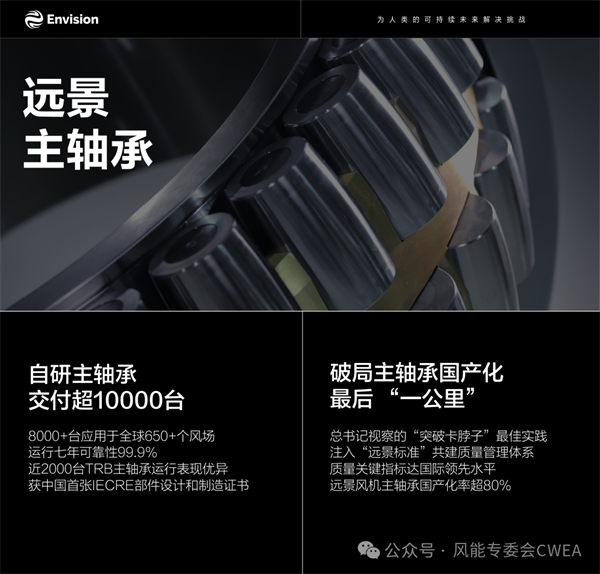 在核心零部件上,远景能源成为全球首个率先实现自研自制滑动轴承大批量投运的整机商,打响行业 “以滑代滚”批量化革命第一枪,其扭矩密度达到240+ Nm/kg,处于行业领先地位,该技术已在1000台机组成功运行。凭借自主研发与持续创新,远景能源在全球传动链市场稳居领先地位,为中国风电装备向更高功率、更高可靠性和更高度电价值发展提供了坚实支撑。