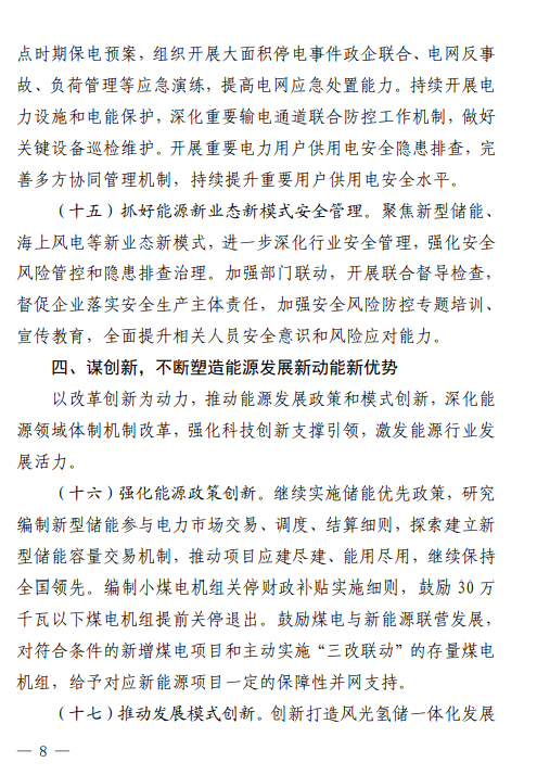统筹推进其他新能源发展。坚持储能优先,加快华能高青、华电福山等光伏市场化并网项目建设。以工商业和户用屋顶为重点,积极推动分布式光伏开发。市场化推进生物质能开发利用,开工诸城辛兴镇、临邑临盘街道等生物质热电联产项目。全年新增市场化并网和分布式光伏发电、生物质发电装机500万千瓦以上。