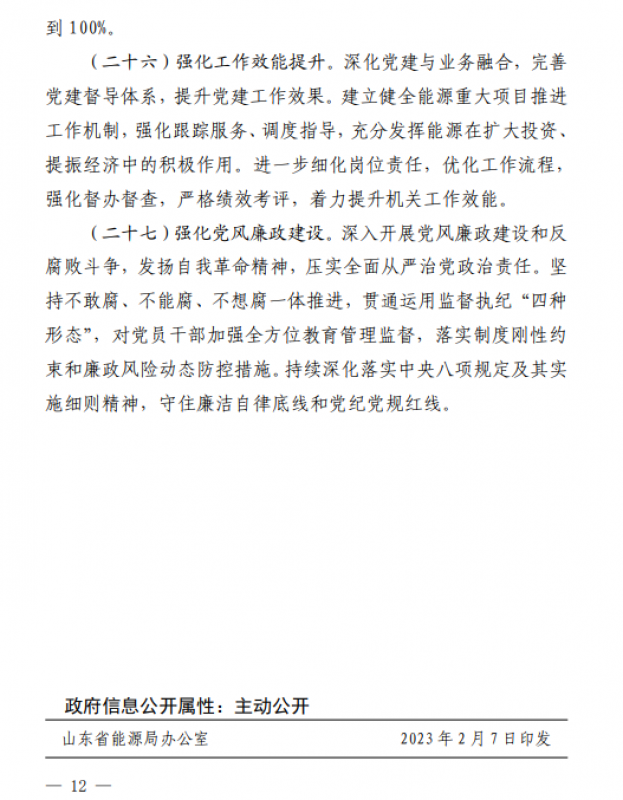 2月7日,山东省能源局关于印发2023年全省能源工作指导意见的通知,通知指出,全面启动鲁西南采煤沉陷区“光伏+”基地建设。因地制宜创新采煤塌陷地产业治理新模式,加快打造生态修复、产业融合的“光伏+”基地,助力乡村振兴战略实施,开工济宁时代永福、菏泽中鲁等项目,建成华电肥城、华能嘉祥等项目。到2023年底,基地在运在建光伏发电装机达到300万千瓦以上。