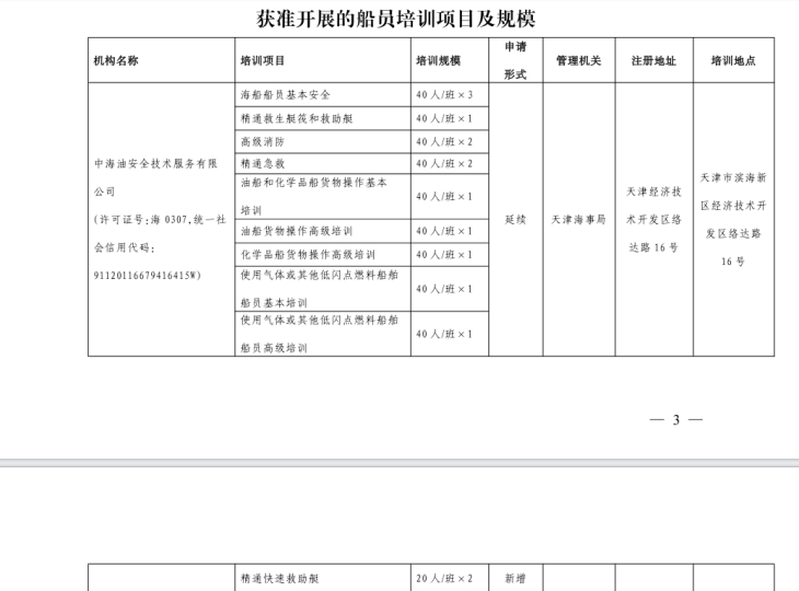 多年来,培训中心将提升海上设施工作人员的安全责任意识和筑牢海上安全生产防线作为首要目标,资质优势已成为向着高质量发展自信迈步的“内核引擎”。截至2023年底,培训中心共获得海船船员基本安全、精通救生艇筏和救助艇、高级消防等10项船员培训许可资质和《海上设施工作人员海上交通安全技能培训》等3项监管资质。