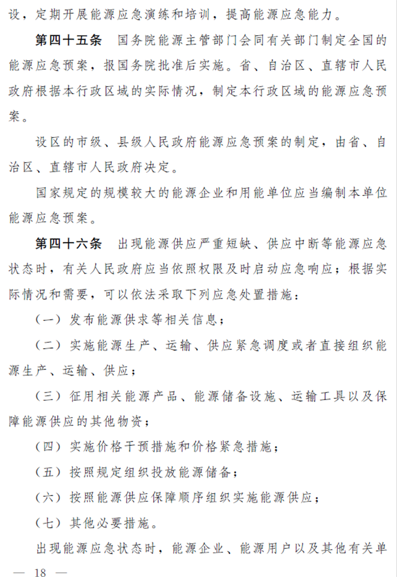 草案明确,本法所称能源,是指直接或者通过加工、转换而取得有用能的各种资源,包括煤炭、石油、天然气、核电、水能、生物质能、风能、太阳能、地热能、海洋能以及电力、热力、氢能等。
