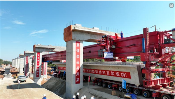 11月28日,全球首台千吨级多模式新能源架桥机“应龙号”在珠肇高铁江机段JJZQ-8标完成首架任务,标志着由中国中铁工业旗下中铁科工研制的全球首台千吨级新能源架桥机研制成功。该台新设备在千吨级架桥机基础上,配置“增程器+动力电池”动力源系统及其控制策略,首次将新能源技术应用在架桥机上,应用后设备燃油消耗可节省40%。