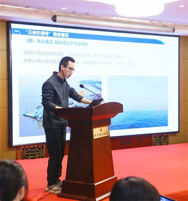 三峡新能源阳江发电有限公司工程师林成迪结合实际,提出《漂浮式风机“三峡引领号”建设及运行过程中存在的问题》,重点分析了集团主导的三系统风电平台的建设实例,阐述了分段制造、双波形抗地形干扰设计、一体化吊装工艺等核心技术与漂浮式风电抗台、抗腐蚀策略。