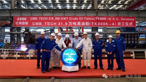 5月22日,北海造船为比利时CMB.TECH公司建造的31.9万吨超大型原油船VLCC 4号船按计划开工。
