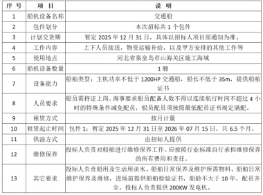 山海关海上风电一期500兆瓦平价示范项目-船舶租赁(交通船)设备租赁招标