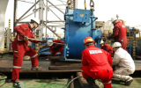 近日,中国海油在渤海海域海洋石油924钻井平台上,由16人组成的起重作业团队历经4小时奋战,顺利将5吨重的涡磁刹车吊进区域狭小的钻台。